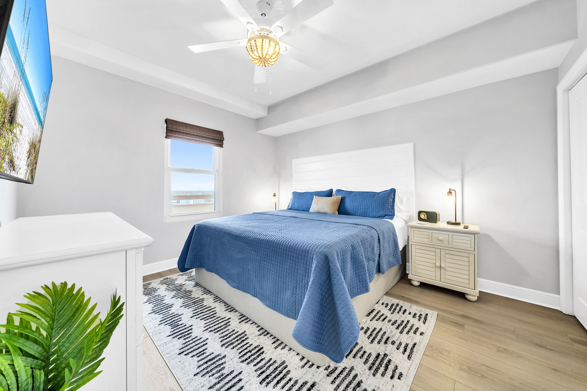 This room is the perfect place to unwind, play, and rest after a day at the beach.